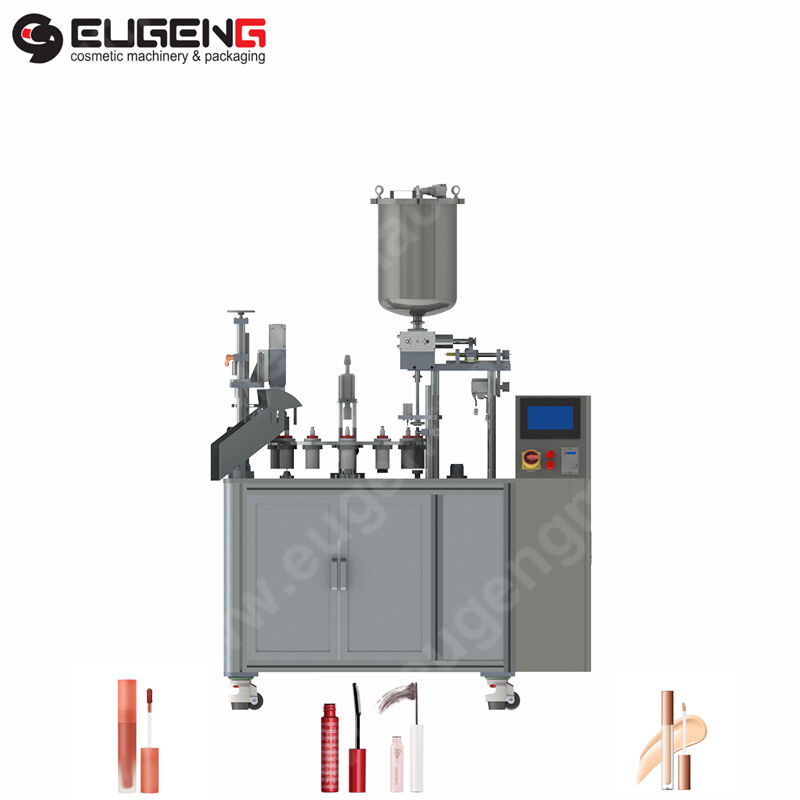 Az EGMF-01A modell egy automatikus forgó típusú töltő- és kupakológép, amelyet kifejezetten szájfény és szempillaspirál gyártására terveztek.
